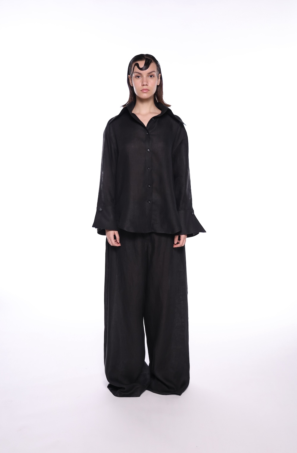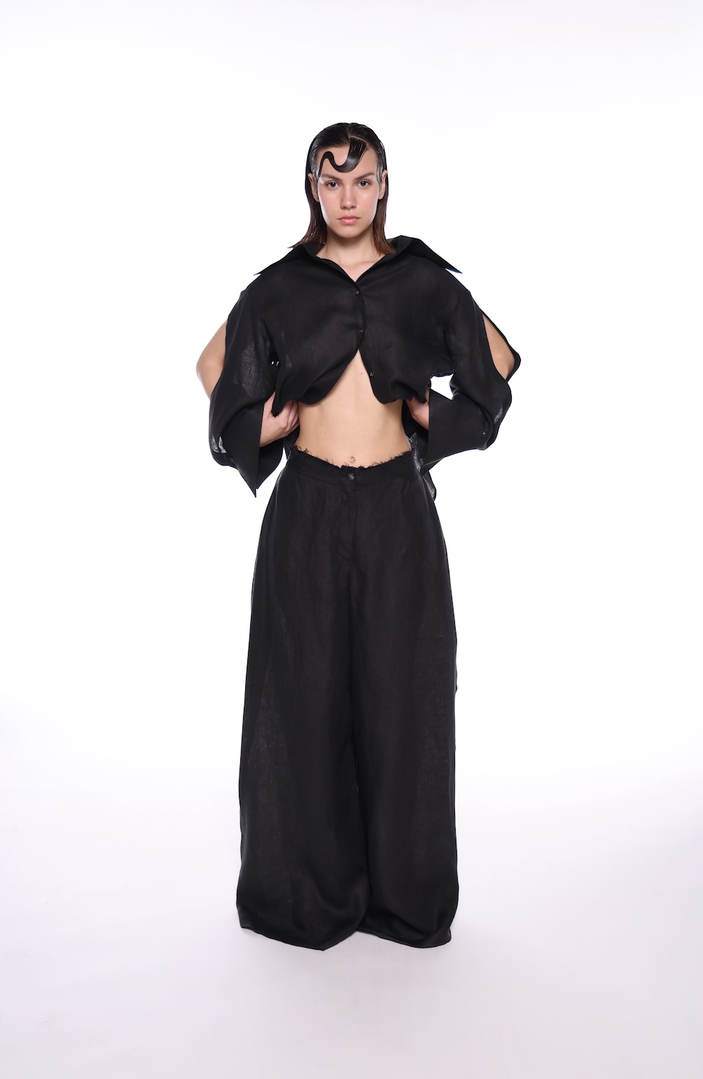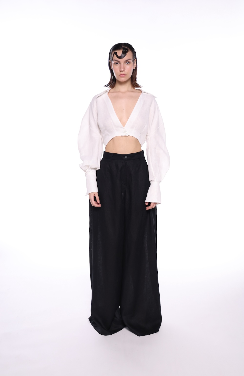 High-waisted wide-leg trousers crafted from lightweight linen.