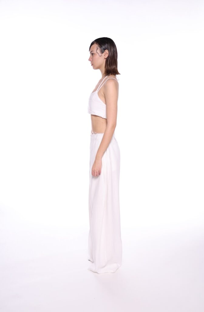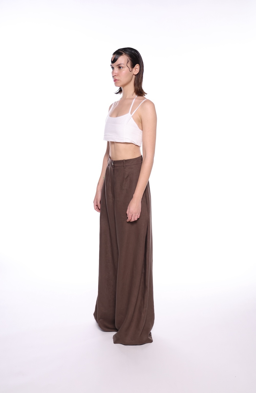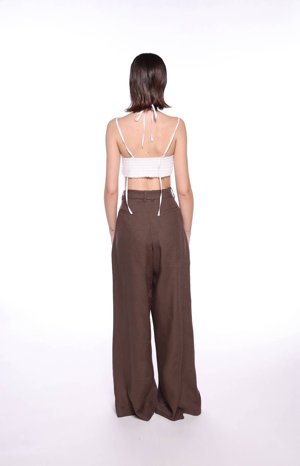 High-waisted wide-leg trousers crafted from lightweight linen.