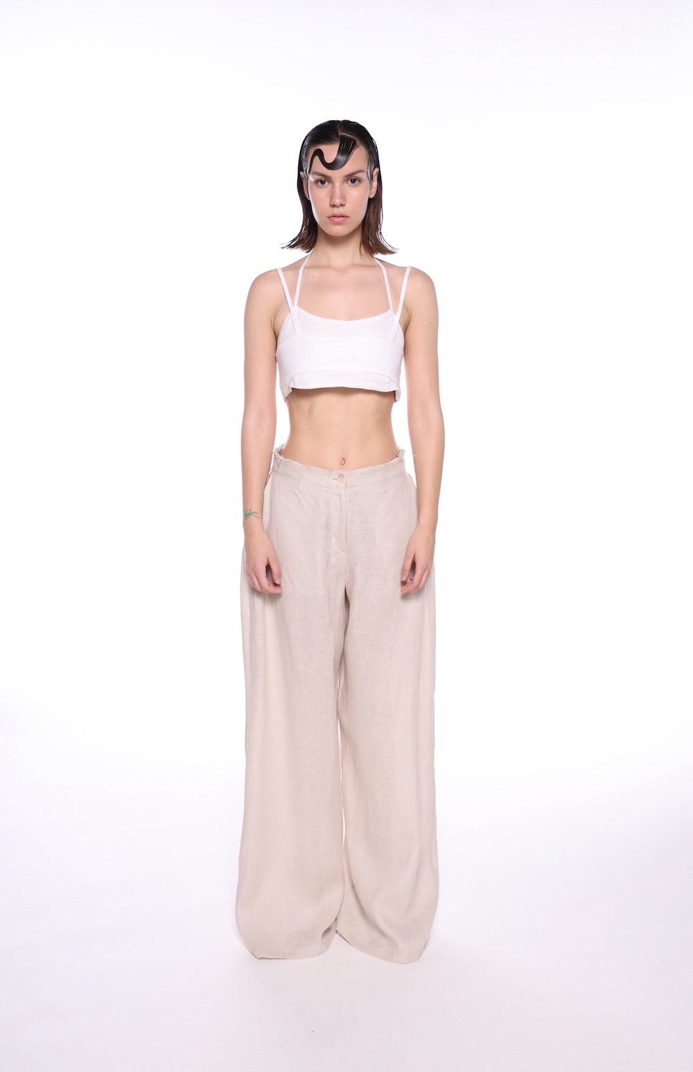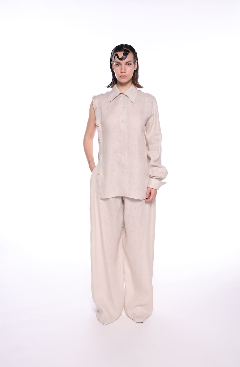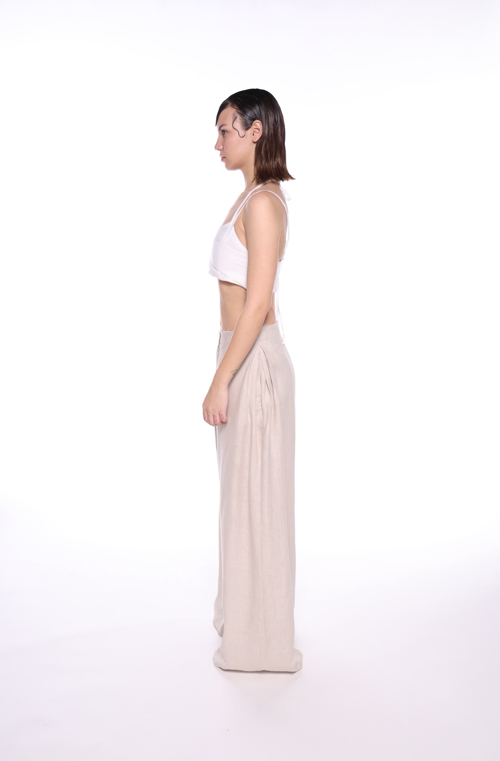 Designed with front pleats for soft volume, side pockets, and clean welt pockets at the back.