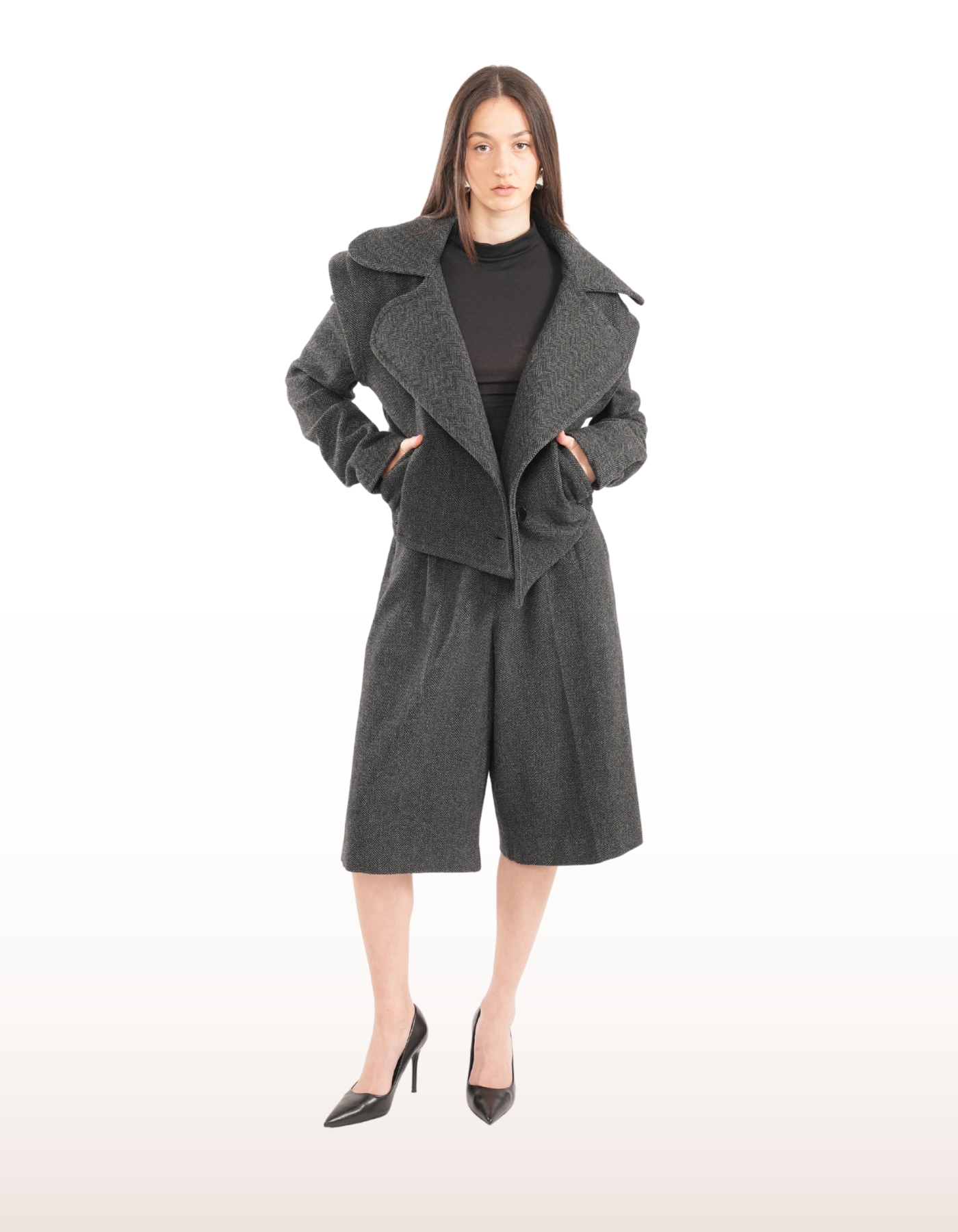 Denata Herringbone Wool Oversize Jacket in Grey