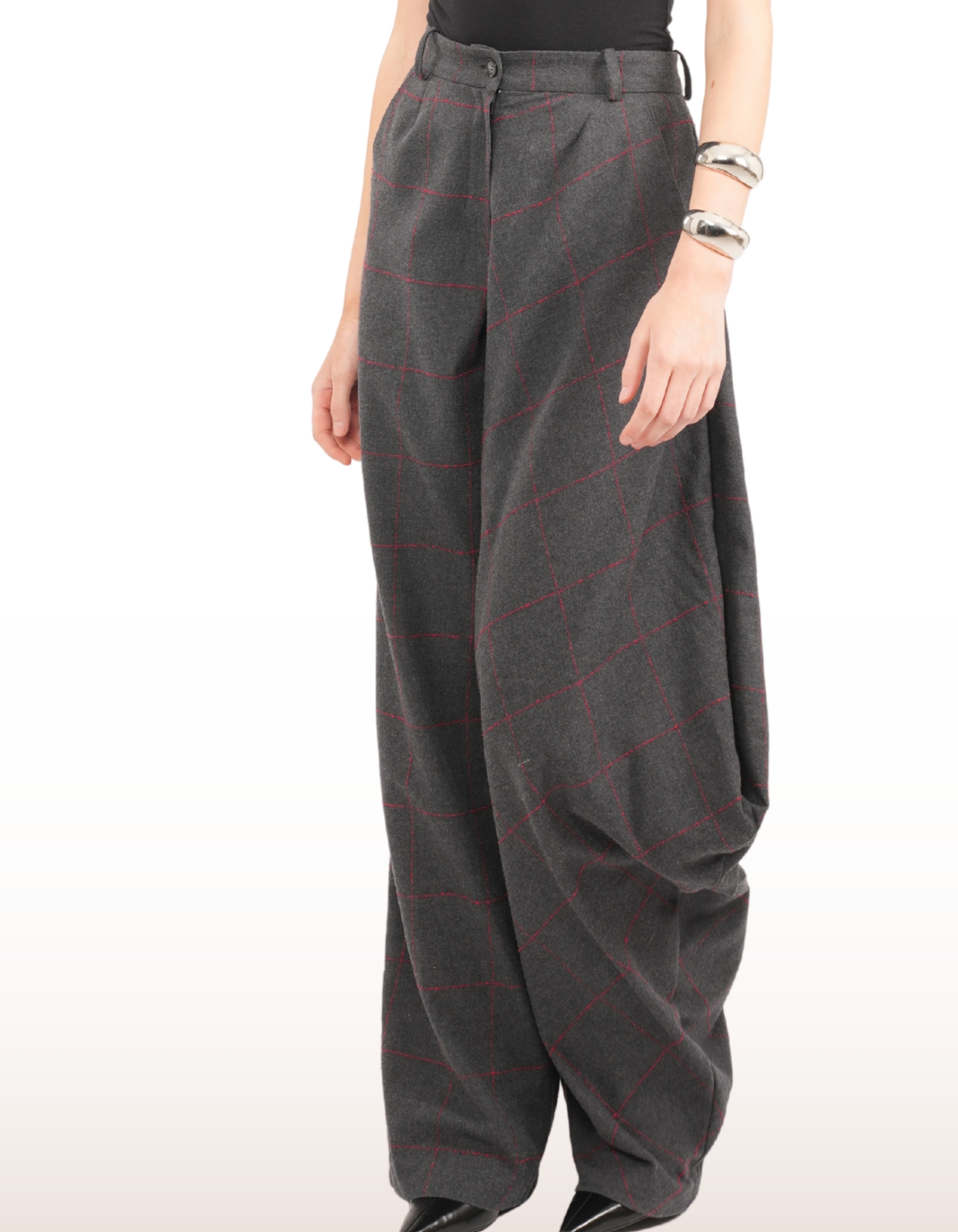 Trousers crafted from a windowpane checked wool-blend fabric.