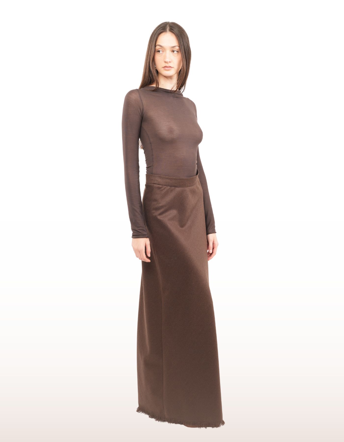Fitted stretch top with a minimalist silhouette and a soft high neckline. Crafted to gently shape the body while offering comfort and clean elegance. This is a versatile piece designed for layering.